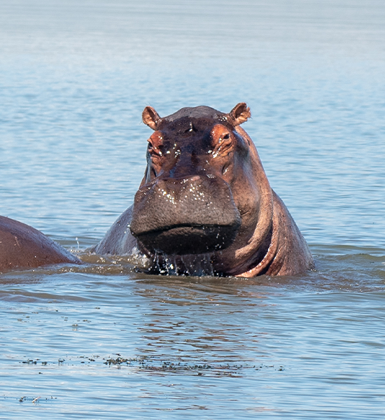 • Hippos wallowing in the water.